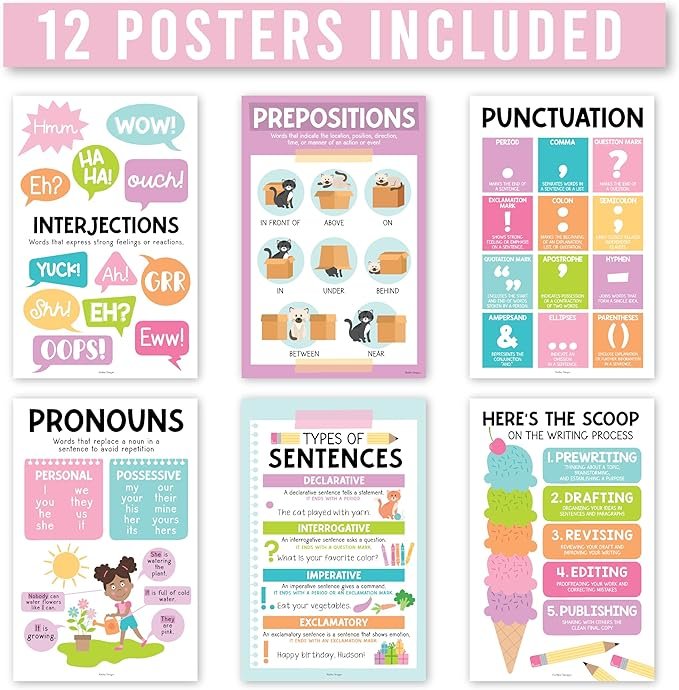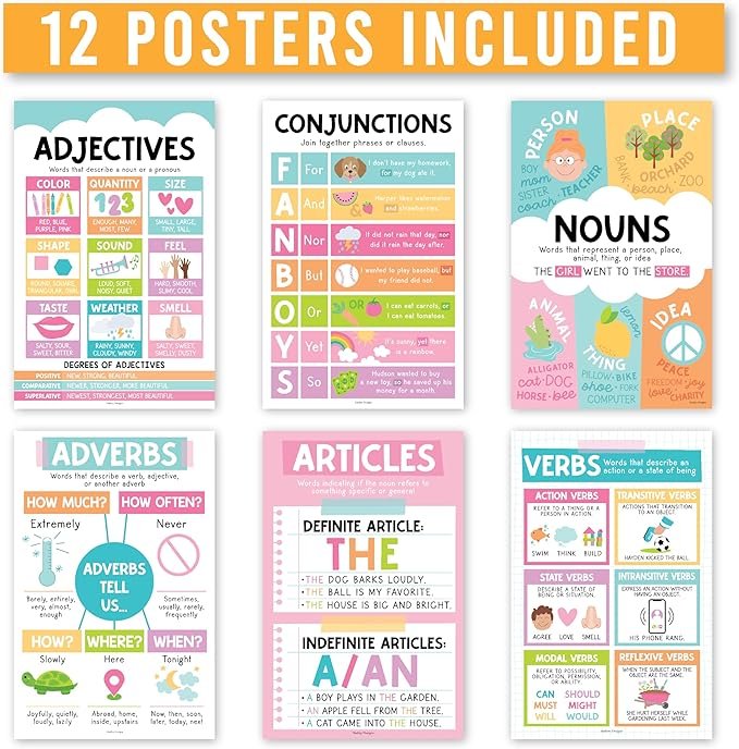 Use colorful posters to transform grammar lessons into fun, hands-on games. Great for quick reference and review, these posters can be used for all ages, and as your children progress in their skills. Here are some creative ways to incorporate the posters into your home learning, or in a group setting like a homeschool co-op.